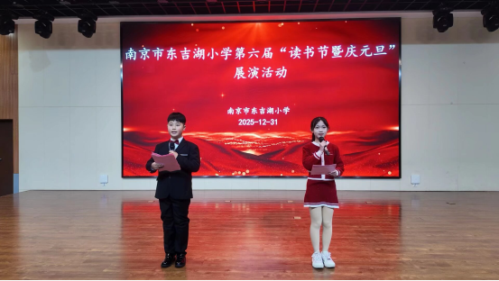 书香氤氲,童声朗朗。12月31日下午,南京市东吉湖小学报告厅内暖意融融,第六届“读书节暨庆元旦”展演活动在此隆重举行。师生与家长齐聚一堂,在冬日的暖阳中,共同开启了一段穿越古今、融汇传统的阅读与文化之旅。