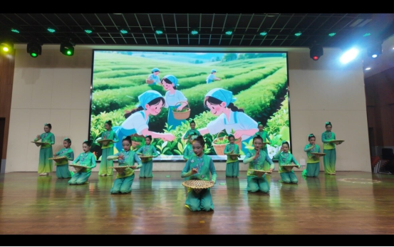 展演在清新优美的《采茶舞》中开场,孩子们用灵动的舞姿,生动演绎了田园劳作的诗意与欢愉,瞬间将观众带入一个宁静而充满生机的世界。