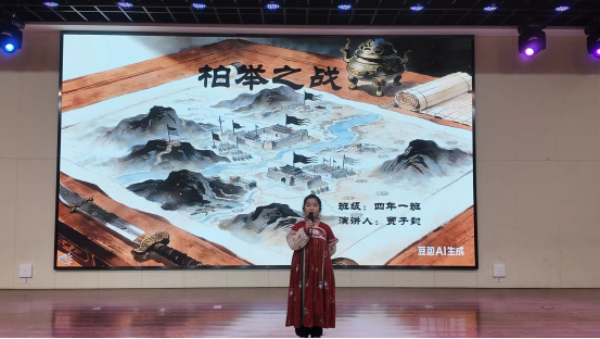 精神的传承不仅在于诵读,更在于理解与实践。六年级同学深情讲述的《“左工”精神》故事,生动诠释了专注与匠心的可贵。四年级同学则透过《柏举之战》的历史叙事,展现了古代智慧与战略思维,让历史的回响激荡在当代学堂。