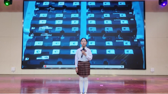 颁奖礼后,二年级同学通过创意表演《字从遇见你》,带领观众走进汉字博大精深的世界,探寻方块字背后的历史与美学。紧接着,话题转向未来,五年级同学在演讲《与AI同行,以学筑梦》中,大胆设想人工智能时代下阅读与学习形态的变革,展现了学子面向未来的思考。