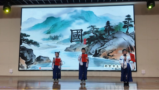 从田园到历史名城,情景剧《金陵寻宝梦》带领大家开启一段穿越时空的探秘之旅,寻觅南京这座古城沉淀的文化瑰宝。随后,一年级小朋友带来的国学传唱《三字经》,用稚嫩而纯真的童声,叩响了中华经典启蒙之门,展现了文化传承的勃勃生机。