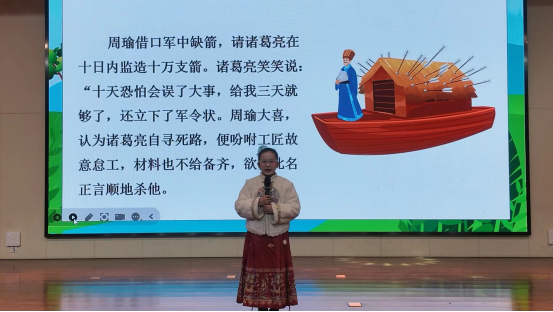 诗词是镌刻在中国人血脉中的文化基因。三年级同学带来的《诗词里的中国》,以及二年级同学朗诵的《唐诗里的中国》,或深情款款,或气势磅礴,勾勒出中华民族丰富而深厚的情感世界与精神气象。其间穿插的经典故事《草船借箭》讲述,则再次以智慧之光点亮舞台。